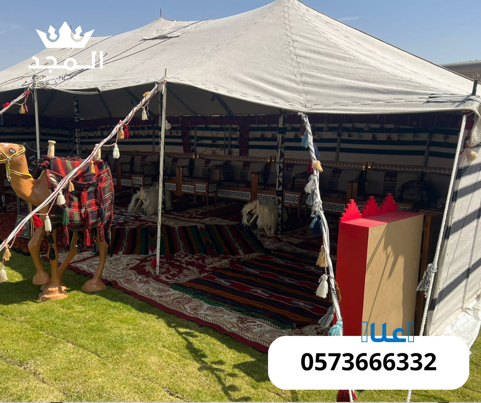 في “المجد للخيام”، نضع خبرتنا بين يديك لتقديم أفضل حلول تأجير الخيام الفاخرة، ومستلزمات المناسبات بجودة عالية وتنظيم احترافي.