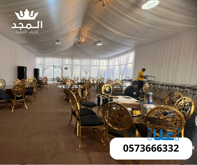 في “المجد للخيام”، نضع خبرتنا بين يديك لتقديم أفضل حلول تأجير الخيام الأوروبية الفاخرة، ومستلزمات المناسبات بجودة عالية وتنظيم احترافي.