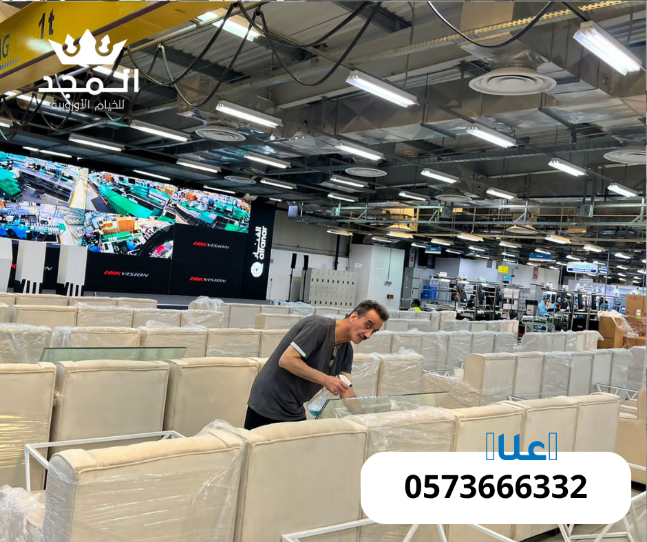 في “المجد للخيام”، نضع خبرتنا بين يديك لتقديم أفضل حلول تأجير الخيام الفاخرة، ومستلزمات المناسبات بجودة عالية وتنظيم احترافي.