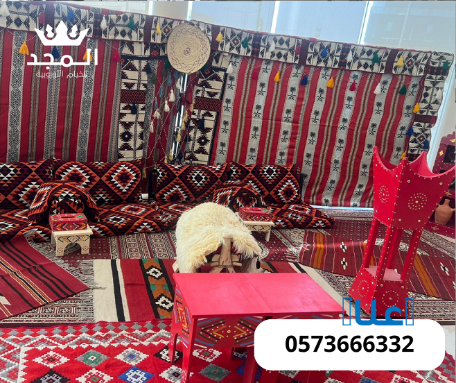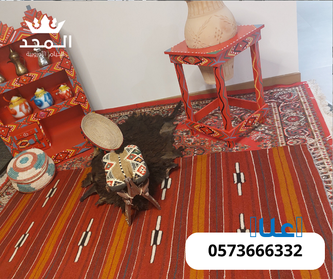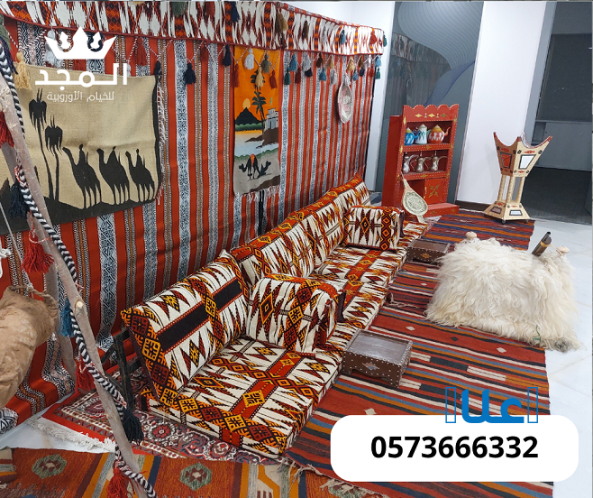جلسات تراثية فاخرة: تستخدم أقمشة وسجاد عالي الجودة.