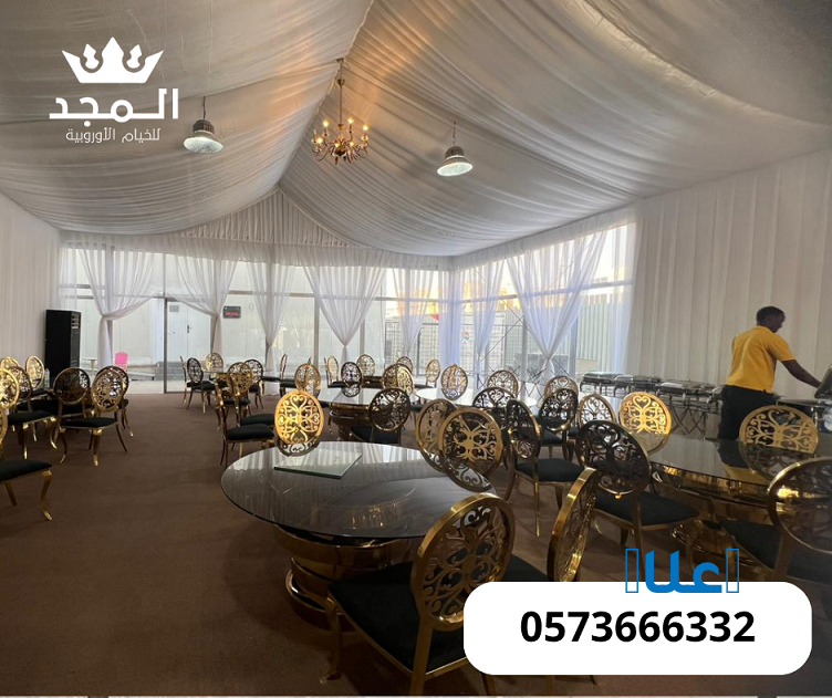 في “المجد للخيام”، نضع خبرتنا بين يديك لتقديم أفضل حلول تأجير الخيام الفاخرة، ومستلزمات المناسبات بجودة عالية وتنظيم احترافي.