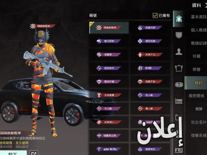 لفل82, الانجازات8950,الشعبيه. 2مليون كونكرs16، سلوب خرافي،المصير مميز،اسلوب خورافي👍 وفيس البنت ،المثك 119،بدله مومياء البيضاء وصفرا وناريه ، وبدلتين اكس ورفيق ذيب ، والاسلحه 34،ام فور ثلجي طقه للماكس واي كي ثلجي كل مسج ام سفن الفرس صغير كل مسج ،M24،البحار السبعة كل مسج يو ام بي الحوس الغاضب كل مسج ‏Bizonالمقاتل كل مسج الربط، تويتر وايميل داخلي كلهم تتغير وموجود فيه فيس البنت